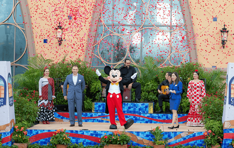 Surrounded by a parade of resort cast members, Mickey Mouse made a special appearance to officially open the Gran Destino Tower with a picture-perfect burst of beautiful flower petals!