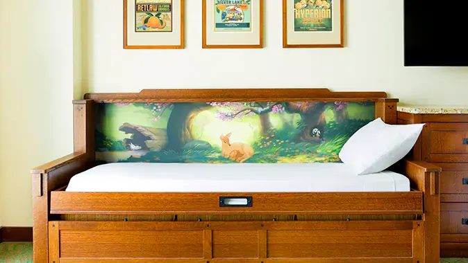 Make sleep time an adventure in itself with our children-sized beds featuring painted murals of Disney characters.